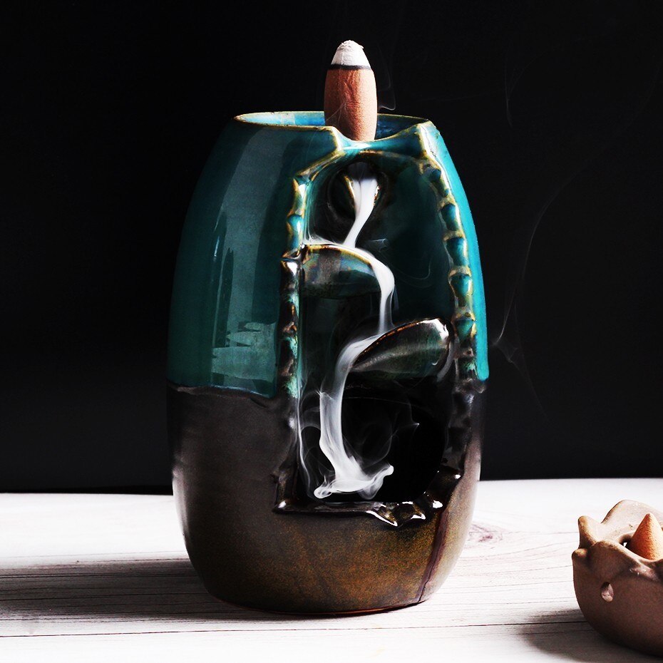 1. Creative Design: Creative ceramic reverse-flow incense burner, left AND right blade interleaving design, not only break a singlefeeling But also, the smoke, connection left AND right, increasing the sense of hierarchy.